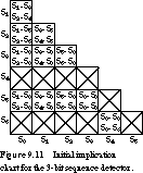 Figure 9.10(a) shows the chart with an entry for every pair of states. This form of the chart is more complicated than it needs to be. For example, the diagonal entries are not needed: it does not reduce states to combine a state with itself! And the upper and lower triangles of entries are symmetric. The chart entry for Si and Sj contains the same information as that for Sj and Si. Thus, we work with the reduced structure of Figure 9.10(b).