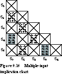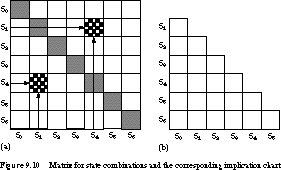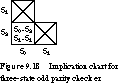 The implication chart for the state transition table of Figure 9.8 is given in Figure 9.18.