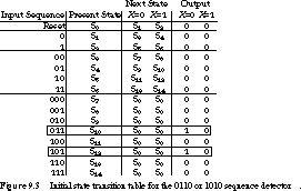 Figure 9.9 shows its initial state table.