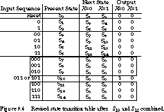 Four-Bit Sequence Detector: State Table and Row-Matching Method We can combine many of the states in Figure 9.2 without changing the input/output behavior of the finite state machine. But how do we find these equivalent states in a systematic fashion?
