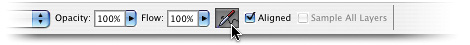 | This cool, undocumented shortcut comes from our good friend, Web wizard, and all-powerful overlord of every Photoshop keyboard shortcut known to man, Michael Ninness (author of the book Photoshop 7 Power Shortcuts, from New Riders, ISBN 0735713316). Here's the tip: As you probably know by now, the Airbrush tool has been gone from the Toolbox since 7.0, but you can add Airbrush control to some painting tools by clicking on the Airbrush icon found in the Options Bar of most Brush tools. However, that takes a lot of trips up to the Options Bar. Ah, if only there were a keyboard shortcut that would let you toggle this Airbrush feature on and off at will. Well, there is, and thanks to Michael, we can share it here it's Option-Shift-P (PC: Alt-Shift-P). Makes you want to buy Michael's book, doesn't it?  |