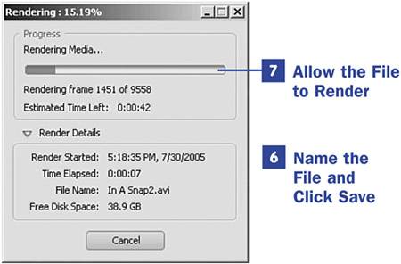 The file must be rendered, just as if you were burning it to a DVD. The rendering process varies in time depending on the size of your project and the speed of your computer. The Rendering dialog box shows you the progress and estimated time remaining. If you decide not to continue rendering the file and click Cancel, the WMV file will not be created.