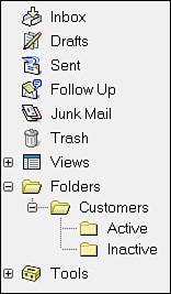 Figure 4.7. The Mail Navigation pane, showing nested custom folders.   | Be careful when deleting documents from your folders because this action deletes those documents from your mail database. When you place a document in a folder or folders, it does not make a new copy of the document for each location; you are actually creating a pointer to that one document in the database. If you no longer want a particular document in a folder, select it and click on Folder in the Action bar and then Remove from Folder from the pull-down list. |