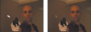 Figure 14.1. Just by virtue of pulling the trigger on the prop handgun, the actor creates enough motion to set the reaction over which the ensuing muzzle flash will be added. (Image courtesy The Orphanage.)