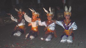 Figure 12.5. This scene is lit by a single key light aimed at the center of the scene, causing a distracting hotspot on the torso of the second bunny from the left.