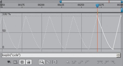 Figure 10.12. Giving the second argument (numKeyframes) a value of 1 actually causes loopOut to use the last two keyframes only (because a one-frame loop is impossible, I suppose). This makes looping only a portion of a more complex animation possible.