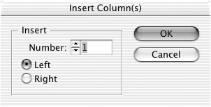 | 2. | Choose Table > Insert > Column. The Insert Columns(s) dialog box appears .