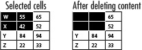 | You may want to delete the content inside a cell without deleting the cell itself. To delete the content in table cells: 1. | Select the cells, columns, or rows.