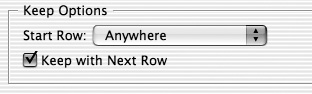The Start Row menu lets you choose where that row starts.  | 4. | Check Keep with Next Row to make sure one row doesn't separate from another .