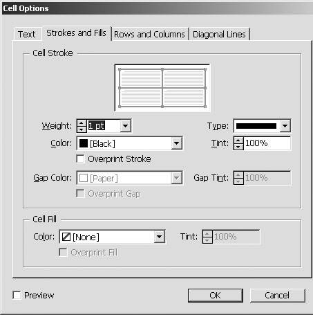 | 2. | Choose Table > Cell Options > Strokes and Fills. The Cell Options dialog box appears with the Strokes and Fills options selected .