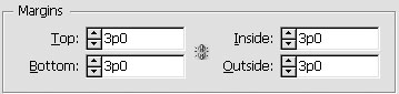 | 2. | If the document is set for facing pages, click the field arrows or enter an amount for the Inside and Outside fields .