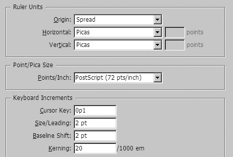 | The Units & Increments preferences (see page 534) let you set the units for rulers, palettes, and dialog boxes, the number of points per inch, and how much keyboard shortcuts move and modify items. |