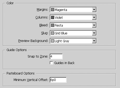 | The Guides & Pasteboard preferences (see page 536) let you set the colors for guides, the snap zone for guides, and the height of the pasteboard. |
