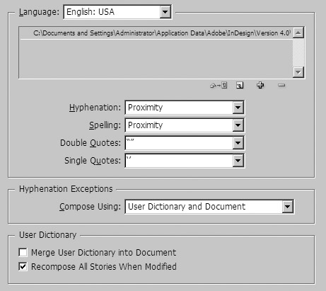 | The Dictionary preferences (see page 537) let you choose the default language, create and manage new dictionaries, set the hyphenation exceptions, and specify how to work with a custom user dictionary. |