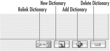 The Dictionary buttons in the Dictionary preferences.  | 2. | Name and save the dictionary file (.udc) to a location. The new dictionary appears in the Dictionary list .