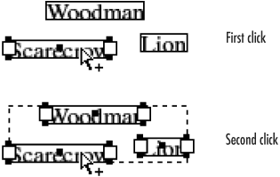 | You can also use menu commands to select items within a group. To use commands to select objects within groups: 1. | Use the Selection tool to select the entire group.