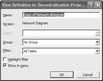 Throughout this chapter, we have observed just the basic formatting for Project’s most popular views. You also may want to look at the Layout settings for other views—how the views are sorted and displayed.