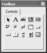 To introduce some of the most common VB concepts, we’ll create a simple custom form. Select Insert Ø User Form, or click the Insert User Form button on the toolbar. A new User Form window opens in the VB Editor workspace, along with a VB toolbar called the Toolbox.