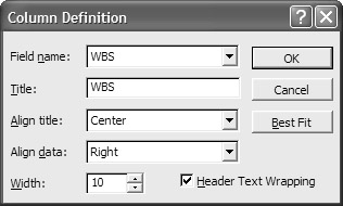 If you use WBS to define project tasks and work packages, you can display a WBS column in the task table. To display the WBS numbering column, follow these steps: