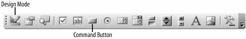 Initially, when you place a new control on a spreadsheet, Excel enters design mode and the Design Mode button on the Control Toolbox toolbar is depressed to indicate this. In design mode you can resize and move controls, whereas when you're not in design mode, clicking on a control will activate it. You can toggle design mode by pressing the Design Mode button on the toolbar.