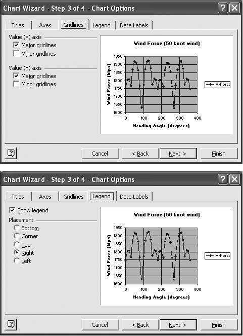 Figure 4-5. Chart Wizard: Step 3, Gridlines and Legend tabs