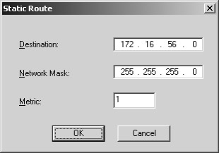 In the Static Route dialog box, do the following: