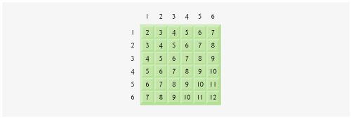 Figure 7.32. The 36 possible outcomes of rolling two dice.