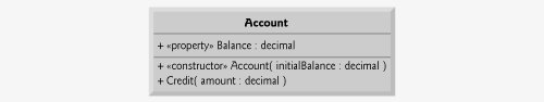 Figure 4.18. UML class diagram indicating that class Account has a public Balance property of type decimal, a constructor and a method.