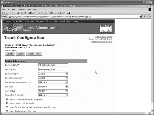 Figure 18-7. CallManager H.225 Trunk Configuration
