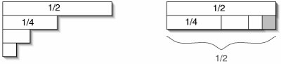 Figure C-3. When the terms of a sum of halves are rearranged, they don't quite fill up a 2 x 1/2 rectangle. The missing piece is precisely the size of the last term: 1/2n.