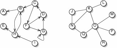 Figure 15-4. Directed (left) and undirected (right) graphs. Vertex G in the directed graph has a self-loop.
