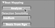 TIP It is advisable to start with a lower Detection Sensitivity setting and only switch to a higher setting if important rhythmic events are not detected. Now that you have timing events in the Beat Mapping track, you are ready to begin the process of aligning the time grid.