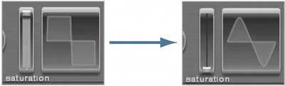 | 8. | Repeatedly press the C1 key on your MIDI controller while you slide the Saturation control slowly upward until it reaches the top (1.00).
