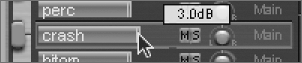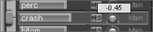 | 24. | Click-hold the Pan knob to the right of the crash voice, and drag down the pointer until the help tag reads0.45.