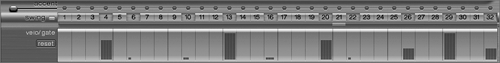 | Working with the Step Sequencer At the bottom of Ultrabeat's interface lies an integrated 32-step sequencer, which greatly aids in the production of drum loops and beat patterns. These patterns, including any user-created ones, are unique to each of the Ultrabeat presets. 1. | Turn the sequencer on by clicking the power button at the top left of the Sequencer section.