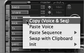 | 3. | Ctrl-click the kick voice at the bottom of the track list (C1) and choose Paste Sequence > 5.