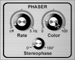 | 6. | Drag the Phaser section's Rate and Color controls, bringing them up a few notches to activate the stereo phaser to your liking.