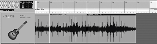 | 13. | Option-drag the Rhythm Guitar 1.3 Region to the right, copying the Region to begin at measure 75.