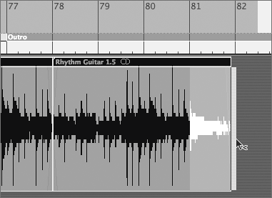 | 7. | Drag directly over the Rhythm Guitar 1.5 Region, starting at measure 81 and ending slightly after the Region end.