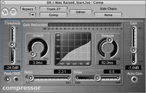 | 4. | Drag down the Threshold slider to a value of 24.0dB.