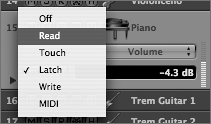 | 9. | While still playing the song, change the automation mode to Latch.