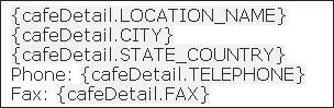 Figure 10.21. Placeholders for the dynamic text fields show in Design view.  | 5. | Repeat Step 4 for the rest of the fields in the cafeDetail recordset.