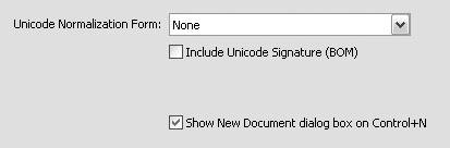 Figure 14.5. Choose a Unicode Normalization Form if you selected Unicode (UTF-8) as your default encoding type.  | 10. | Click OK to save your New Document preferences.