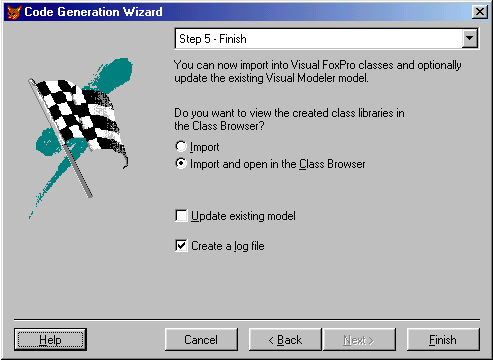 You might also encounter other reasons for deselecting a class. One would be to exclude classes that are not meant to be implemented in Visual FoxPro. Data or menu objects are typical examples. However, step 2 is not the place to do that. After all, you'd have to do that every time you wanted to update your libraries. It is much better to set these options in the model, where those settings are persistent. (See below for more information about this.)