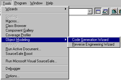 Visual FoxPro communicates with the modeling tool using OLE Automation. The wizards are smart enough to figure out what modeling tool you are using (Rational Rose or Visual Modeler) and they know how to deal with each tool. If you have both tools installed, the wizards invoke the one you used last. Every time Rose or Visual Modeler shuts down, it adds an entry to the Registry, indicating that it is the standard modeling tool from now on. So if you want to influence the tool to be used, start the tool of your choice and shut it down right away. Then start the Modeling Wizards.