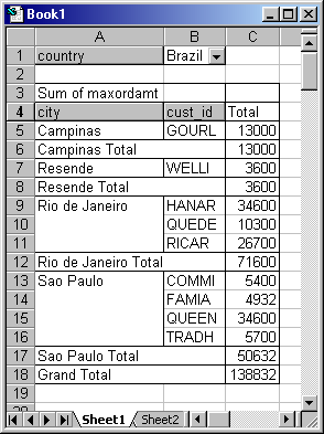 . A simple pivot table.Creating the pivot table in Figure 6 with the help of the Pivot Table object is relatively easy. First you need to open a data source. The name of the table, the database and the fields you want to use must be specified through the appropriate properties of the Pivot Table object. Also, you have to specify which fields to use in the initial table and where to place them. All of this can be done like so: