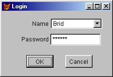 The Password dialog box provides a simple login screen (see Figure 36). To use it, you must have a table with user names and passwords. The dialog will then tell you whether the user specified a name and a matching password. Obviously, you have to tell the dialog what table and what fields to use. You can do this by setting a couple of properties:
