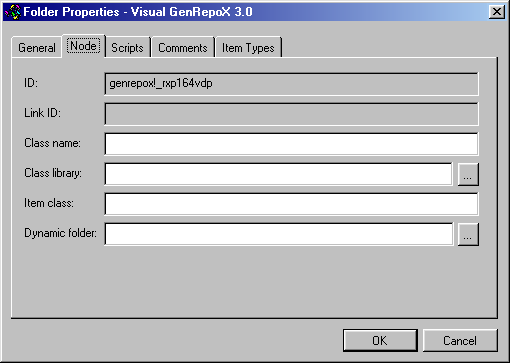 | ItemClass | Memo | The default class used for all items within a folder. Used only in folder items. | _activexitem _reportitem |