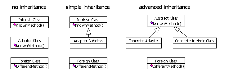 As you can see, the adapter automatically creates an instance of the class that is supposed to be used. It keeps a reference to this class internally (oForeignObject in my example). This is important, because it ensures that I can instantiate the adapter in the same way as other objects, which is essential if I want to use the adapted class as if it were an internal one.