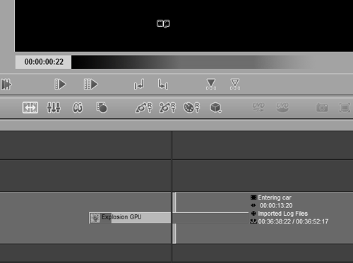 Rendering a Realtime Transition Although the phrase "rendering a Realtime transition" sounds like a contradiction of terms, you have to remember that what you are seeing with a Realtime transition is a preview of that effect. With the right hardware (MovieBox Pro, or the AGP Pro card from Pinnacle), you can even view these transitions on an external TV. The quality is so good that you might mistakenly think that it already has rendered, but the clue is the slice above the transition (Figure 8.31). Figure 8.31. A yellow slice above an effect indicates that it is a real-time preview.